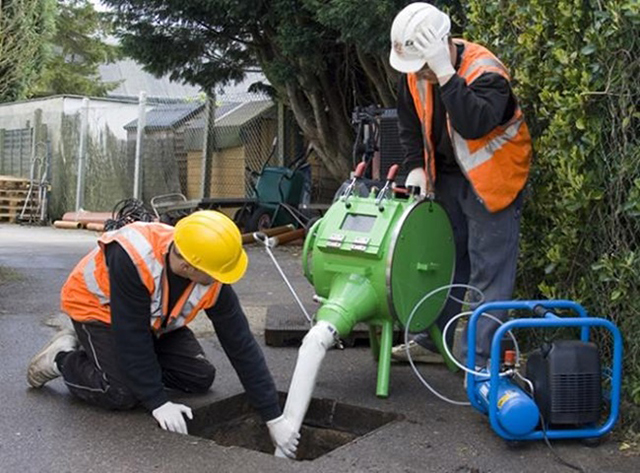 Máy nén khí tạo áp suất mạnh để đẩy chất thải ra khỏi đường ống. Đây là phương pháp nhanh chóng, hiệu quả cho cống ngầm hoặc cống lớn.
